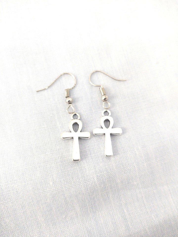 SIMPLE ANKH - TAU CROSS - ETERNAL LIFE INFINTY SILVER ALLOY CHARMS PAIR EARRINGS