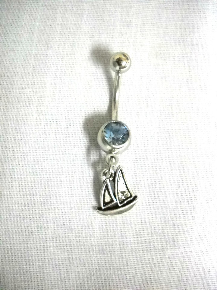 OCEAN SAILING NAUTICAL SAILBOAT BY THE SEA BEACH FUN CHARM 14g BLUE BELLY RING