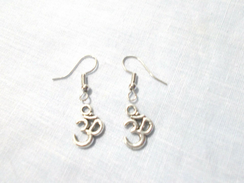 BUDDHA MEDITATION OM / OHM / AUM SILVER COLOR ALLOY METAL CHARM PAIR OF EARRINGS