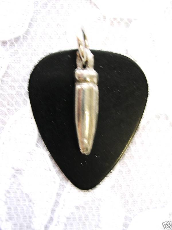 NEW SOLID BLACK GUITAR PICK PEWTER BULLET CHARM PENDANT