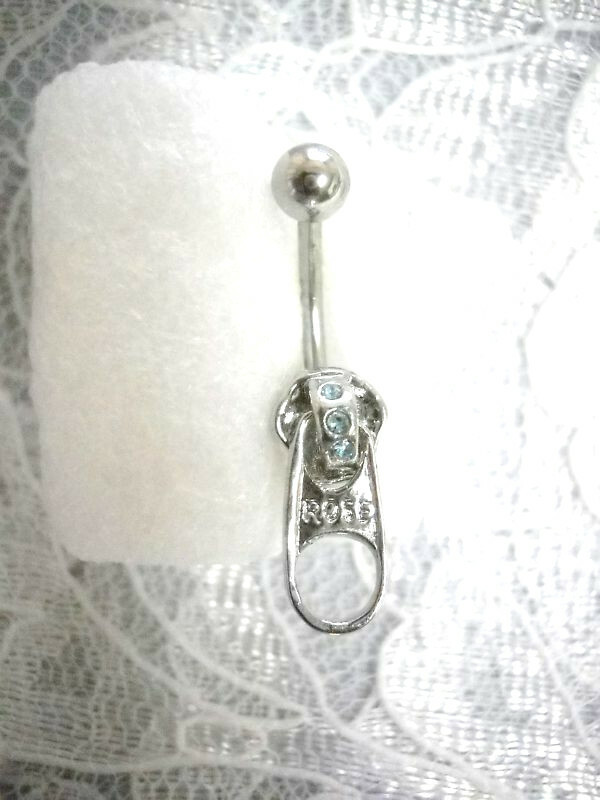 Zipper Pull with Baby Blue Crystals Solid One Piece 14g Bellyy Ring Navel Barbel