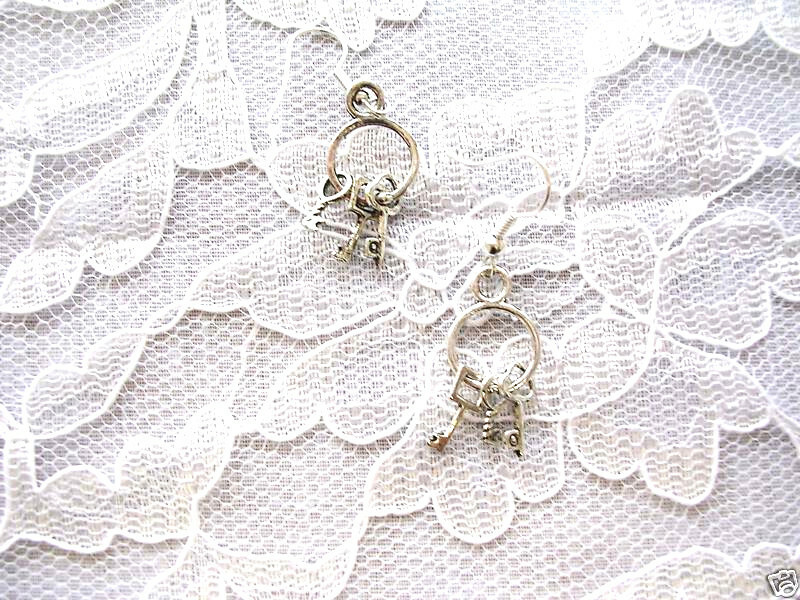 KEY RING with 3 KEYS KEEPER OF THE KEYS DANGLING SILVER ALLOY PAIR OF EARRINGS