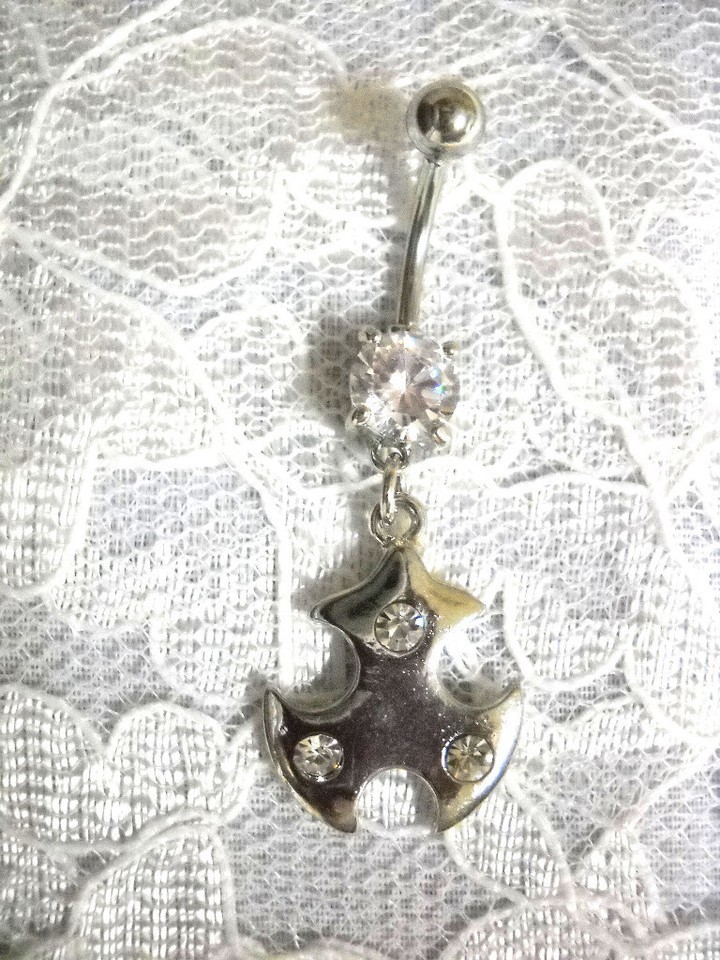 SALE UNIQUE CLEAR CRYSTAL ACCENT CELTIC SHIELD & CLEAR CZ BELLY BUTTON RING