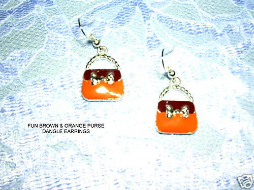 NEW ORANGE & BROWN PURSE HANDBAG SILVER TONE EARRINGS