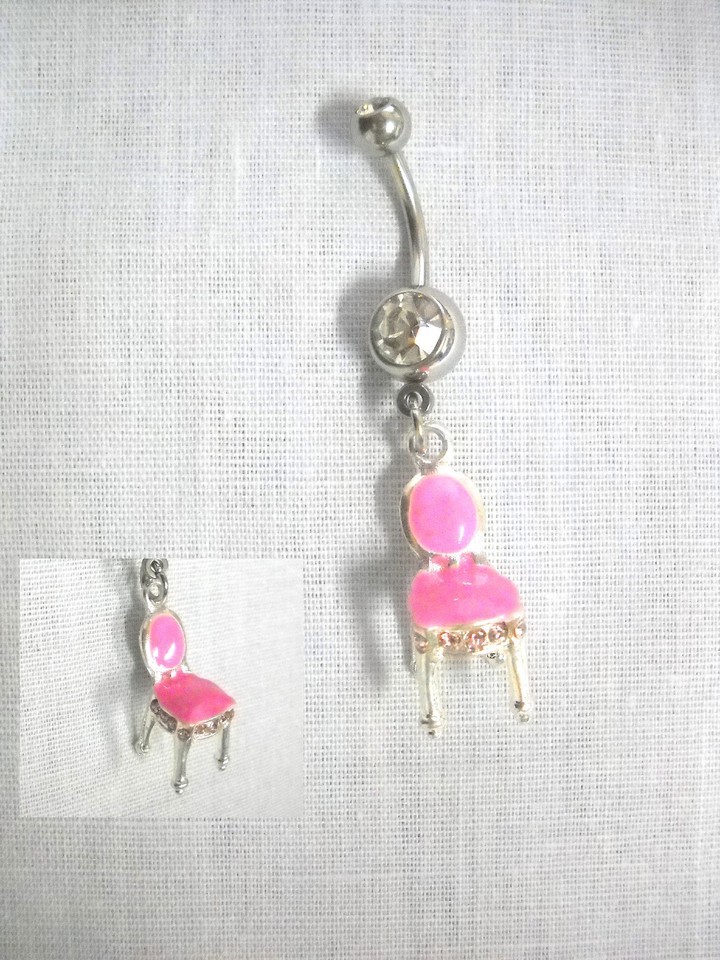 DIVA PRINCESS CHAIR HOT PINK & SILVERTONE CHARM ON CLEAR CZ BELLY BUTTON RING