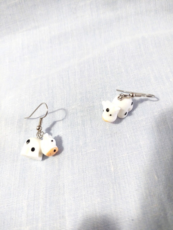 3D COW FARM ANIMAL WHITE AND BLACK SPOTS COLOR LIGHT ACRYLIC FASHION EARRINGS