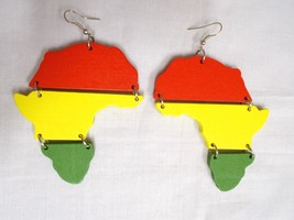 NEW ETHNIC AFRICA PRIDE BOLD RED YELLOW GREEN WOOD 3 TIER DANGLING 3" EARRINGS