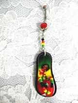 BOB MARLEY CARTOON RASTA COLOR YIN YAN FLIP FLOP ON 14g RED CZ BELLY BUTTON RING