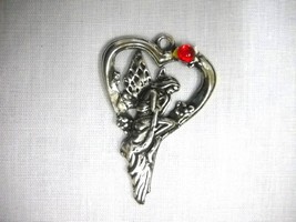 NYMPH PIXIE FAIRY IN LONG GOWN ON HEART SWING w RED GEM PEWTER PENDANT NECKLACE