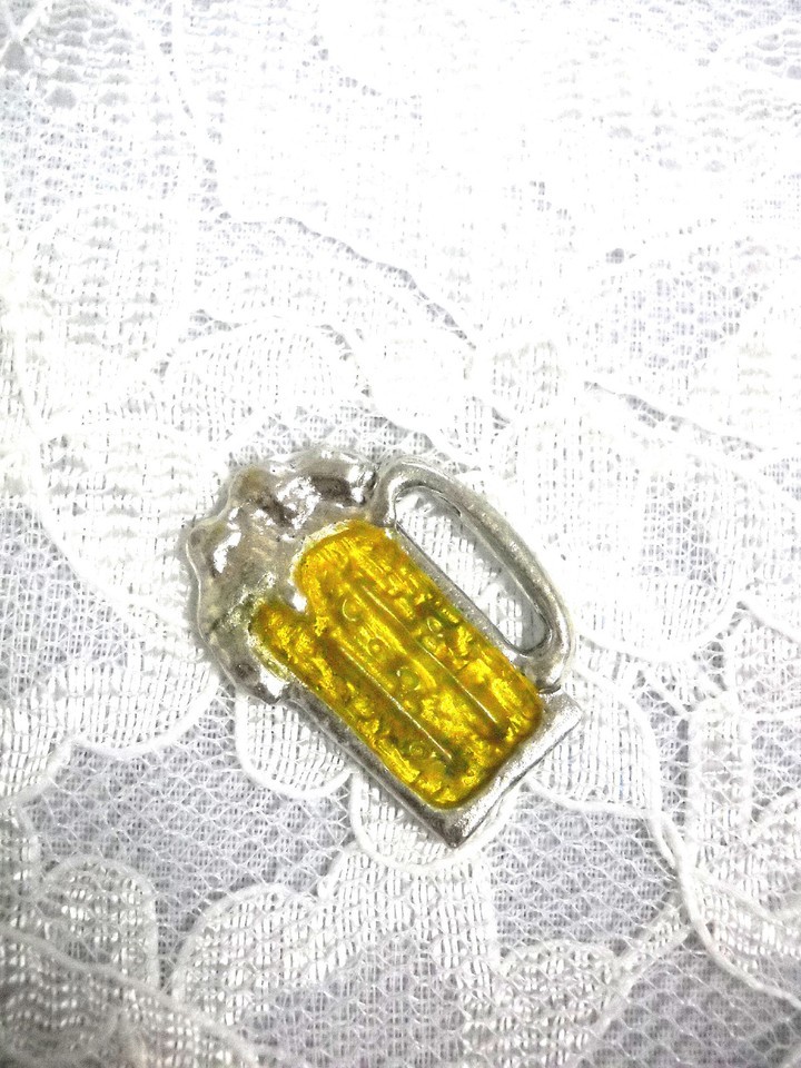 REALISTIC BEER MUG w YELLOW COLOR INLAY USA PEWTER PENDANT ON ADJ CORD NECKLACE
