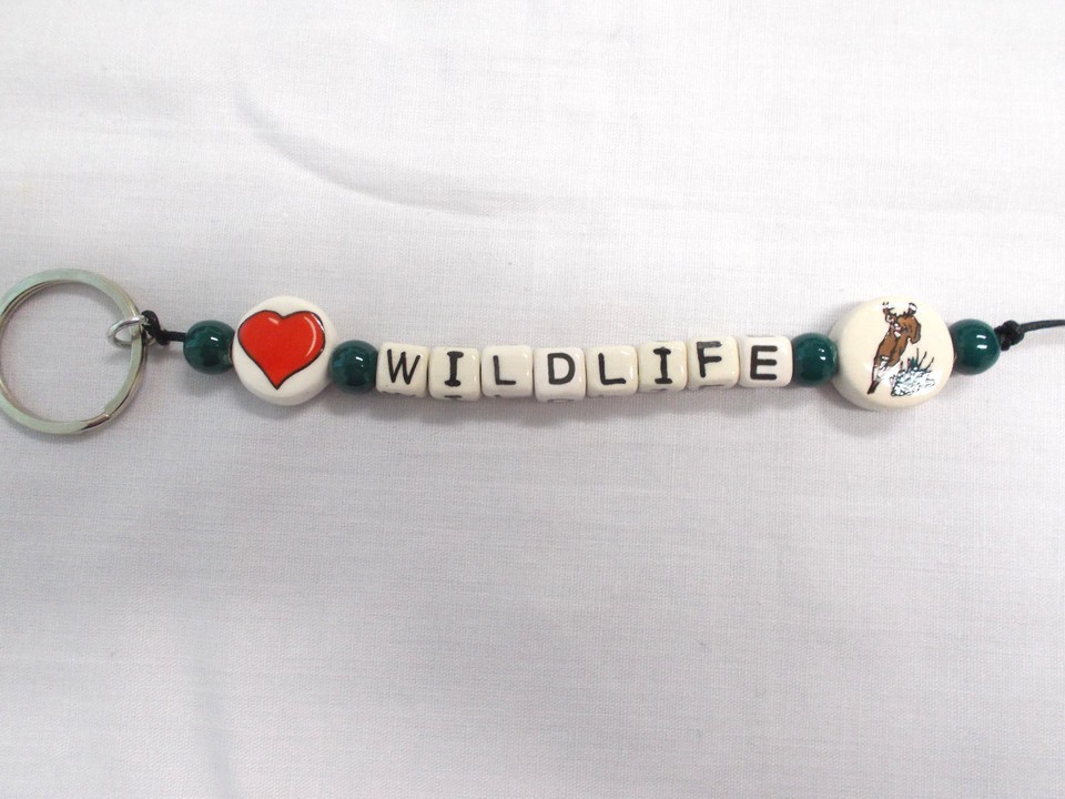 COLOR HEART and DEER DISC WILDLIFE TEXT LETTERS CERAMIC HAND PAINTED KEYRING