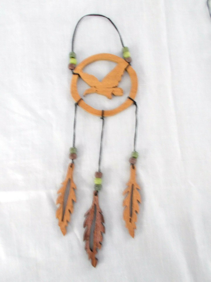 You are viewing a hand made / hand crafted ALL WOOD Dream Catcher with a WILDLIFE FULL BODY FLYING EAGLE cut out in the center and 3 dangling cut out wooden FEATHERS