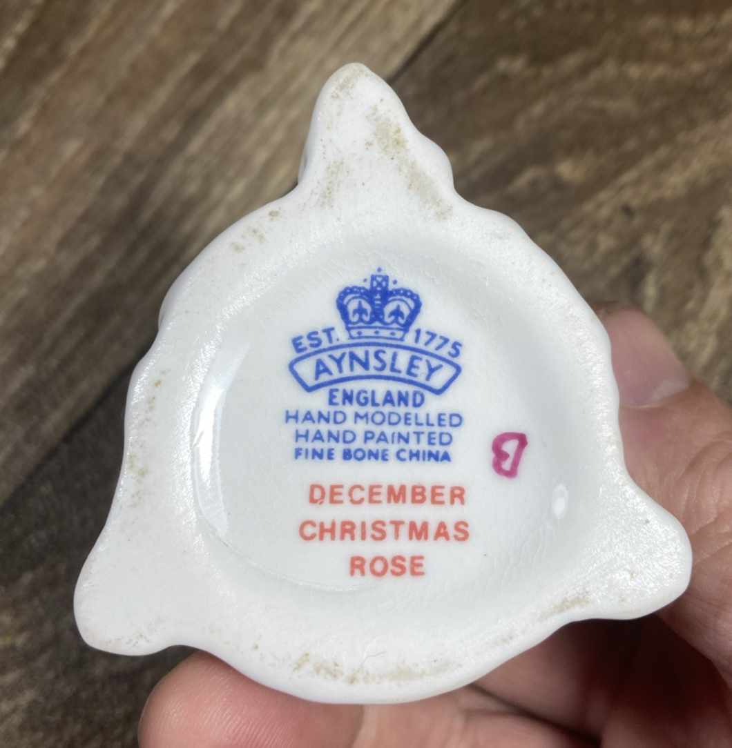 Aynsley December Christmas Rose Hand Painted Hand Modeled Bone China Miniature