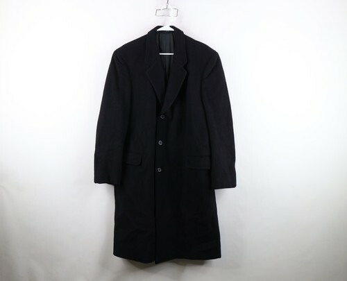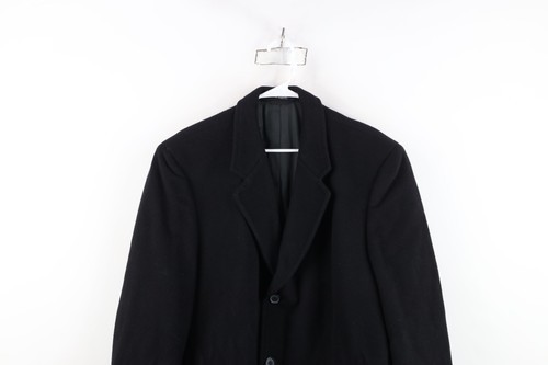 Vintage 90s Mens 46R Heavyweight Wool Cashmere Overcoat Trench Coat Jacket Black