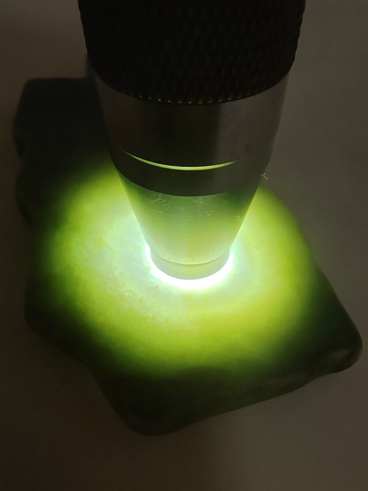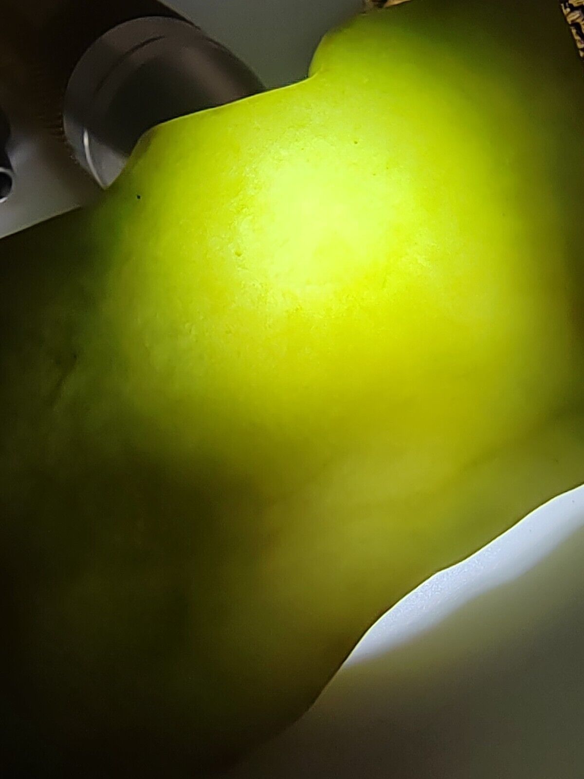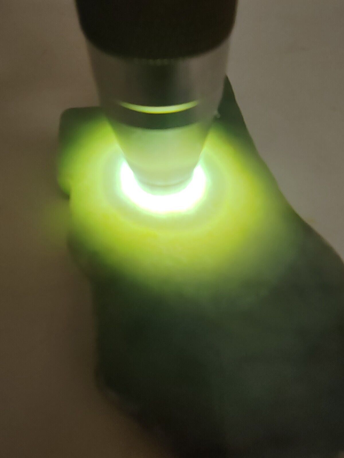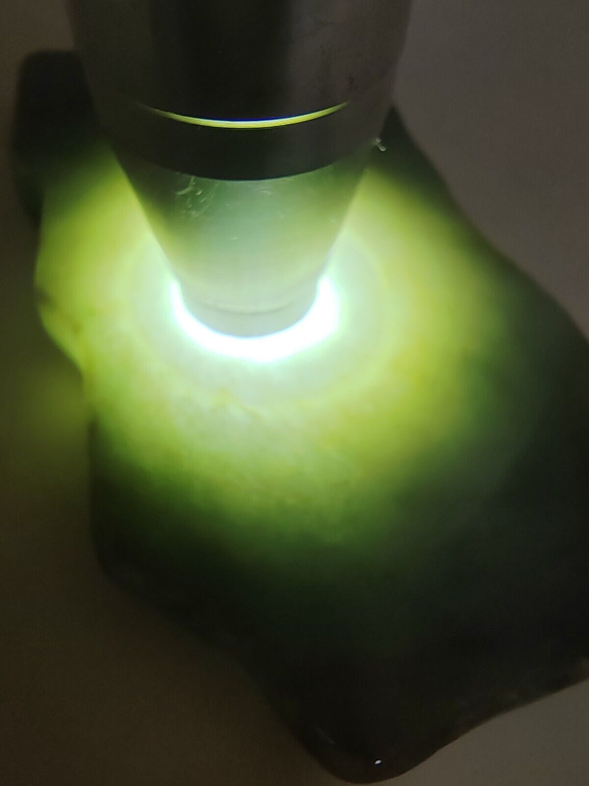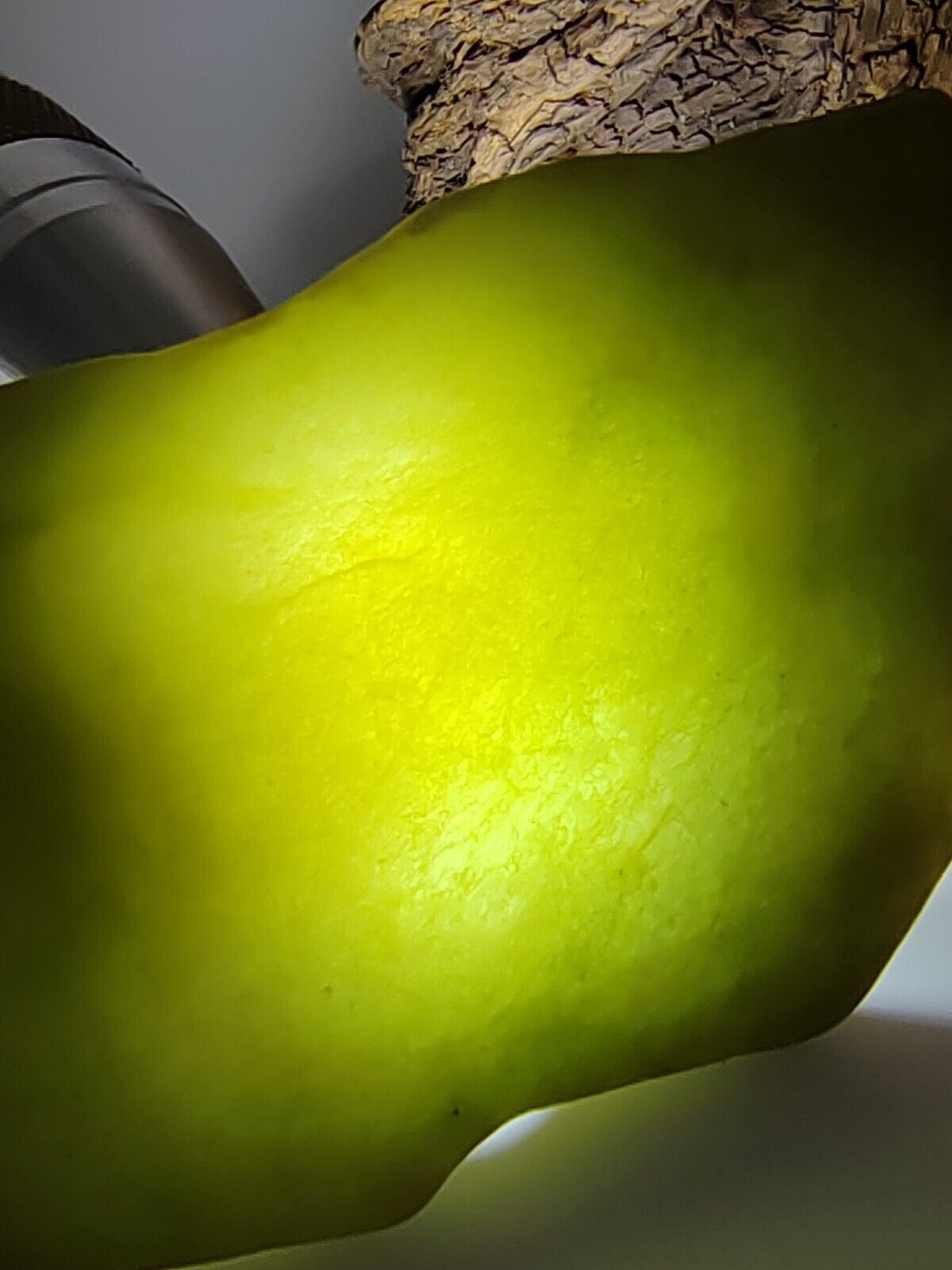This item is a piece of natural Burmese jadeite rough material, belonging to the variety of icy light green. After initial polishing, the material exhibits a delicate texture and natural coloration alternating between yellow and green when illuminated by light, demonstrating excellent translucency characteristic of jadeite. Ice light green jadeite is a sought-after variety among jade enthusiasts for its rarity and captivating hue, evoking imagination and nostalgia. Due to the rarity of Burmese jadeite and the increasing demand in the collector's market, it holds high preservation and collection value, earning the title of "King of Jade." Furthermore, it serves as an investment with great potential, either as a preserved collectible or sculpted into exquisite high-end jewelry. The dimensions of this rough stone are approximately 109.30mm/55.20mm/9.20mm, with a weight of about 140 grams, equivalent to 700 carats.