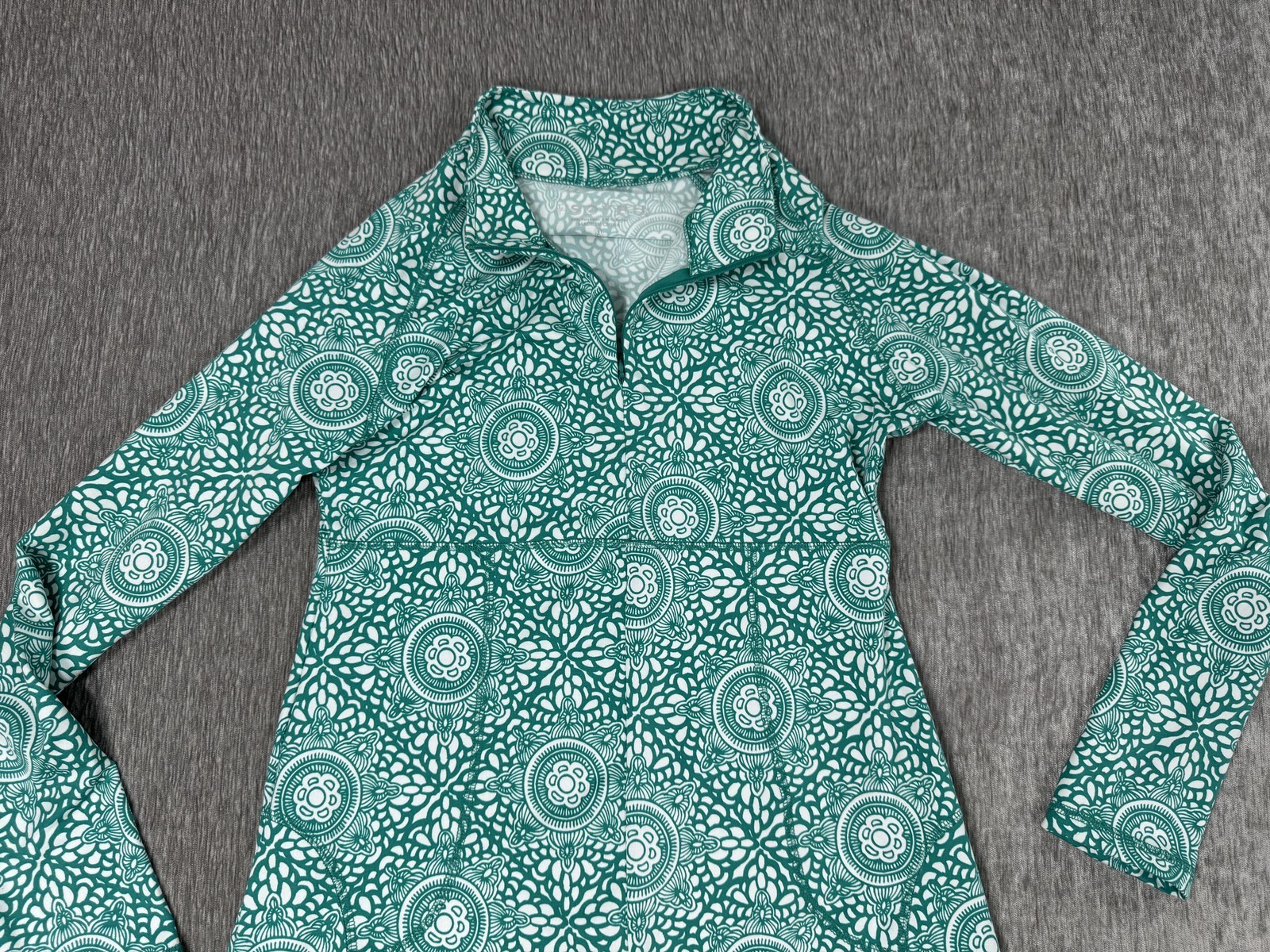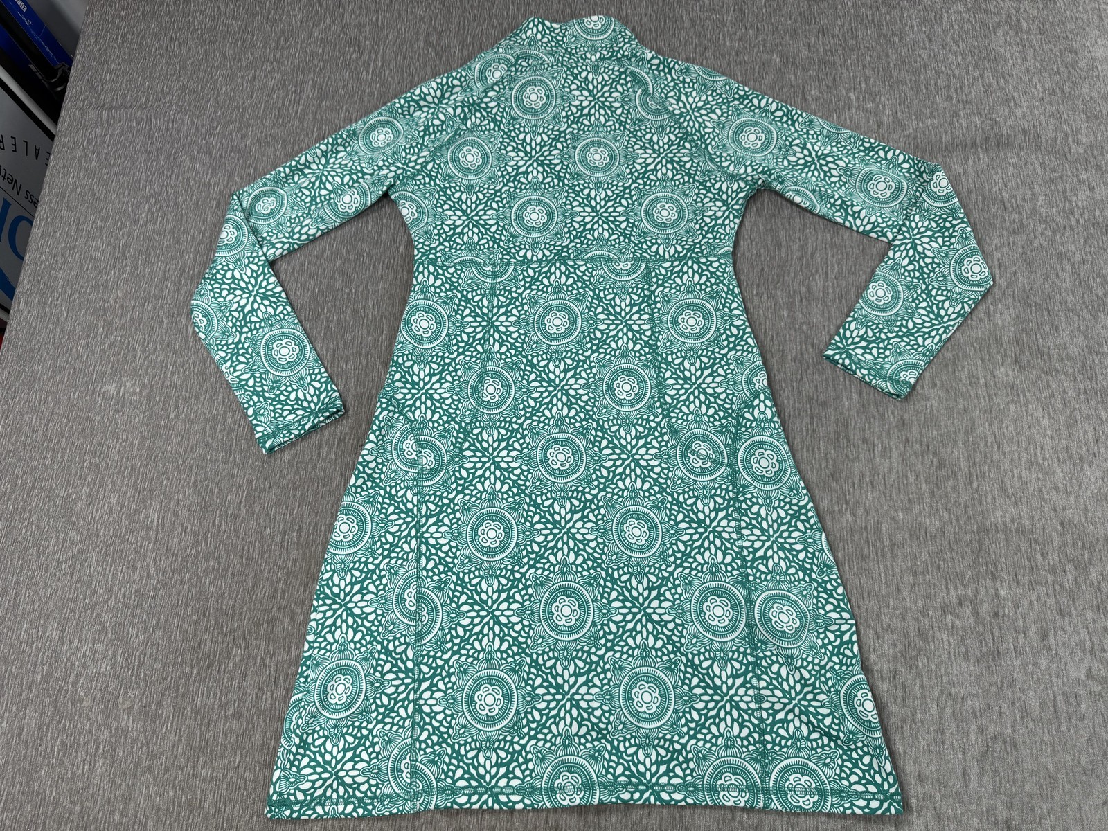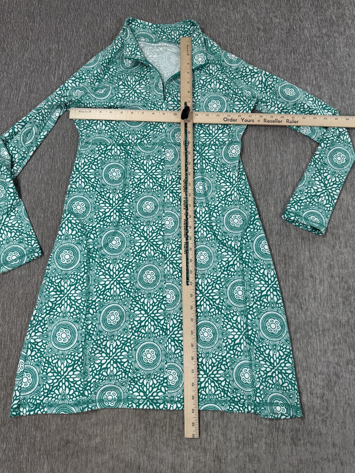 Soybu Dress Womens Medium Green White Long Sleeve Quarter Zip A-Line Mock Neck