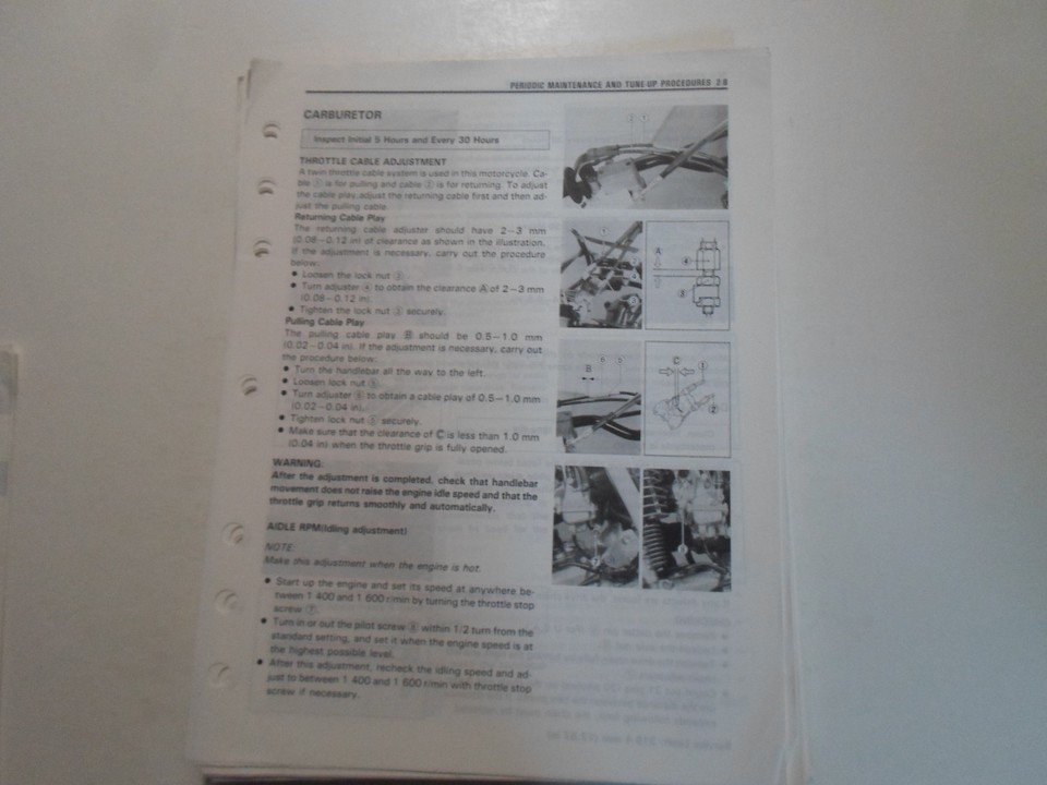 Informative with illustrations, step by step instructions, assembly/dis-assembly, exploded illustrations/diagrams/troubleshooting, great manual to have when owning a MOTORCYCLE. This manual will save you money in repairs/service.