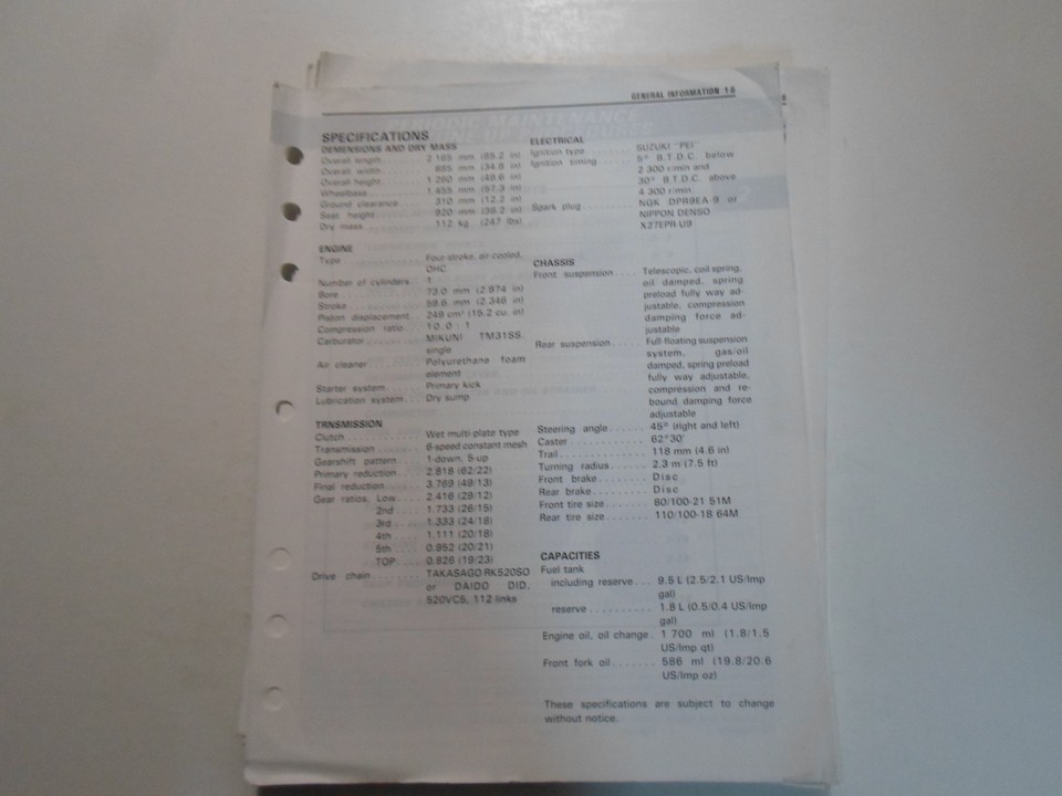 1991 Suzuki DR250 S N SN P SEP ER SES Service Repair Manual LOOSE PAGES WORN 91