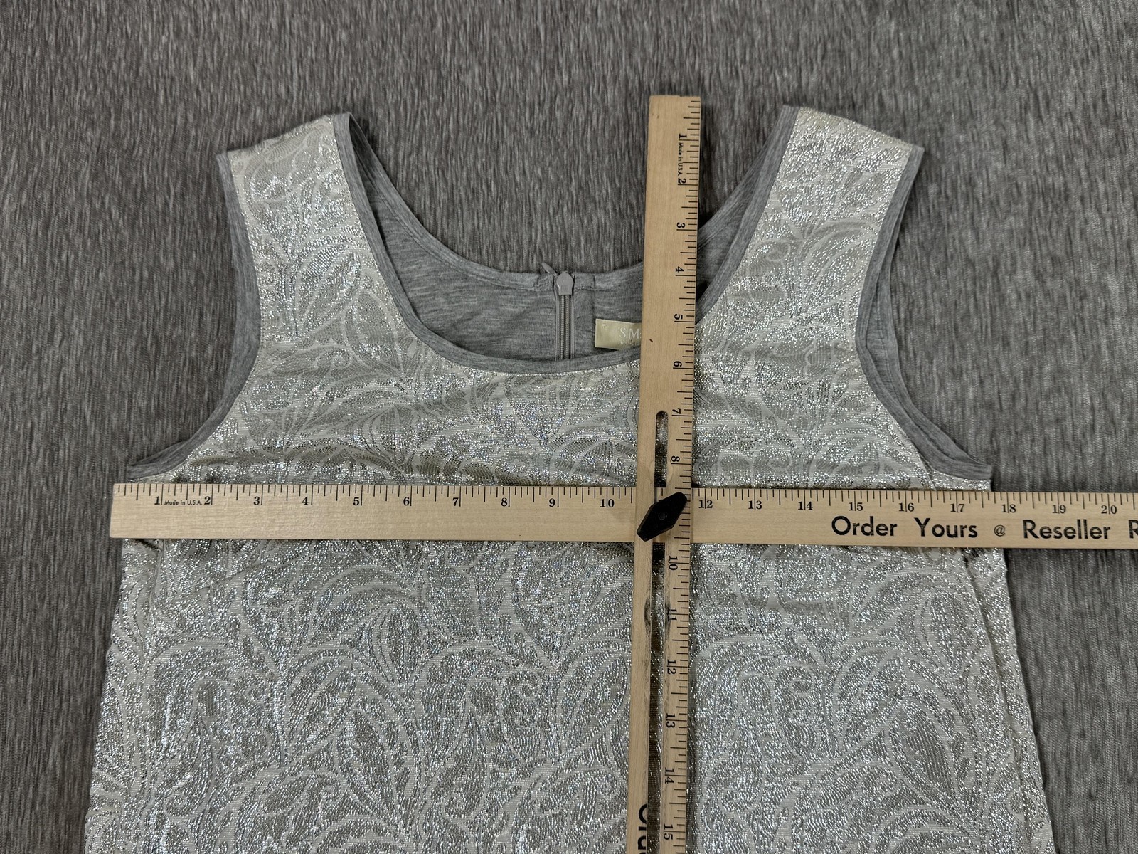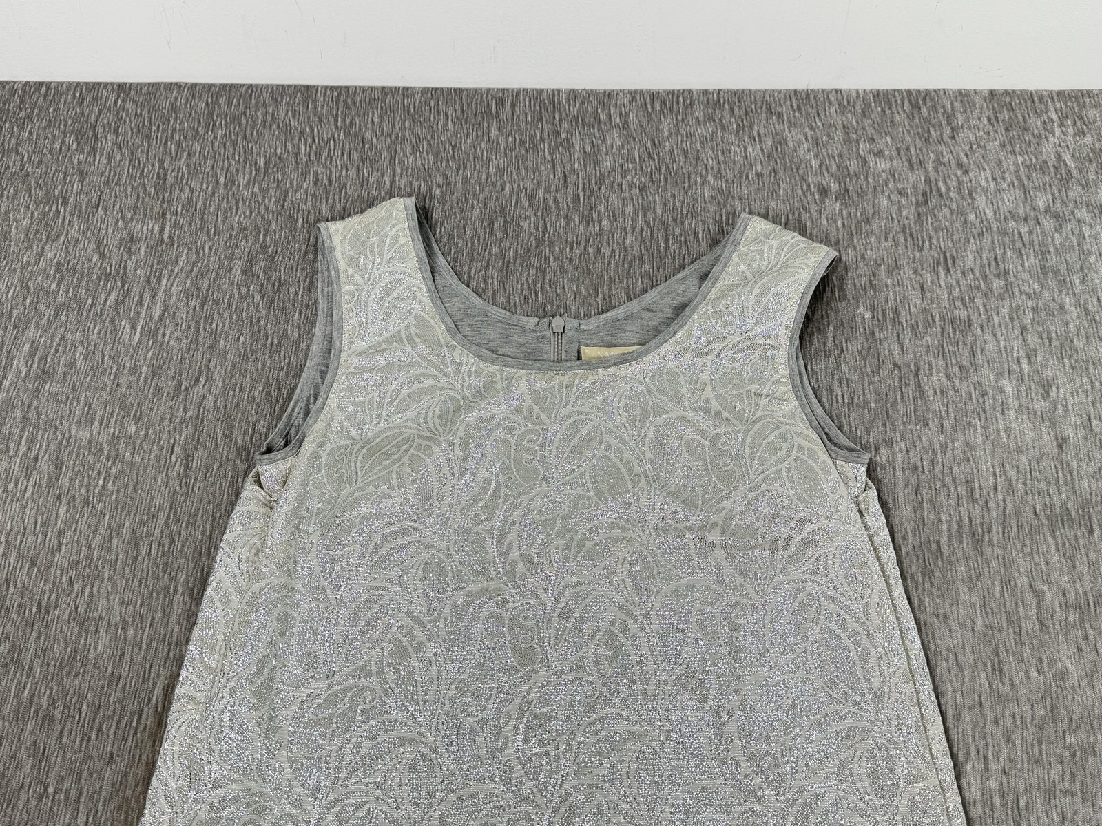 S Max Mara Dress Womens US 8 Silver Metallic Jacquard Sleeveless Shift Cocktail