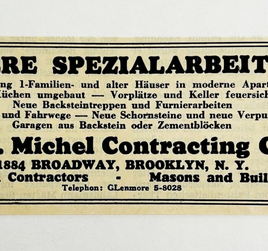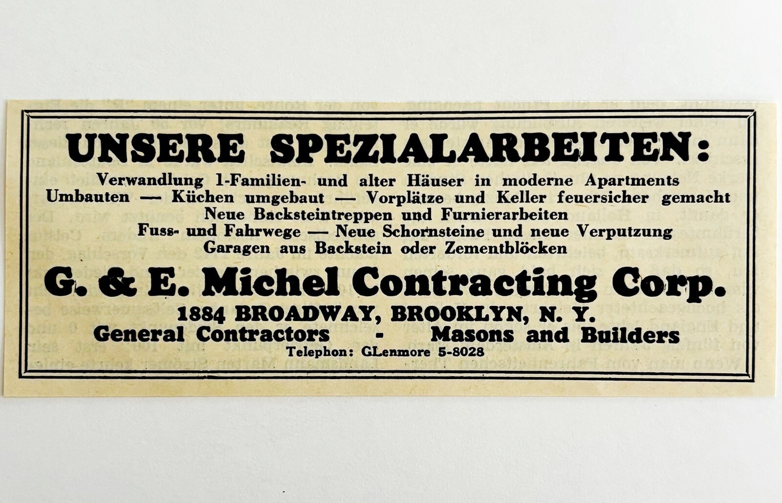1945 WW2 German-USA Construction Advertisement G & E Michel Contracting NYC C94C
