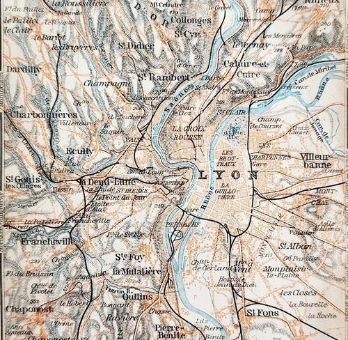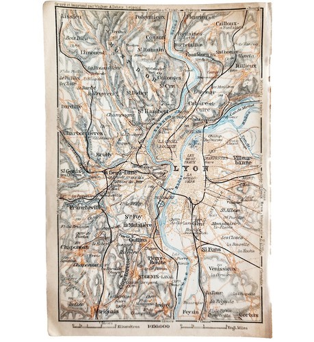 Map Lyon Southern France Rare 1914 Lithograph WW1 Topographic Mini Sheet DWAA20B
