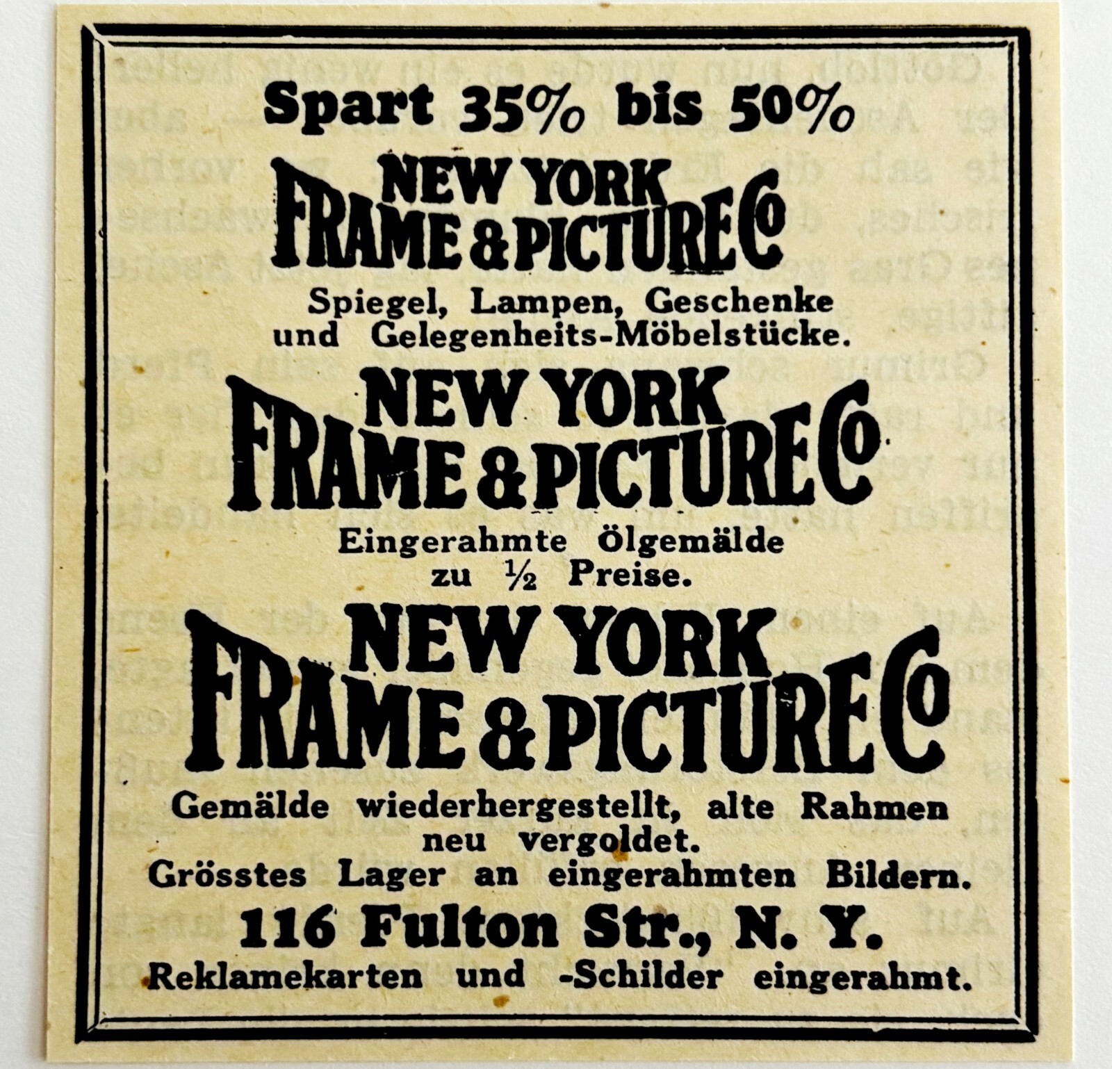 1945 WW2 German-USA Framing Advertisement New York Frame & Picture NYC C94B