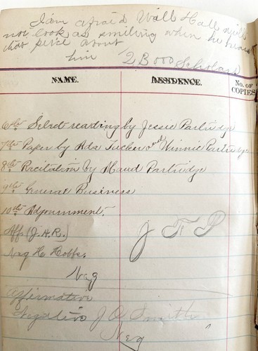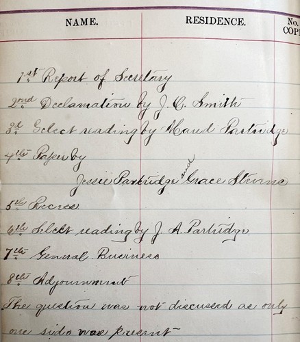 A Lyceum meeting held in Maine at the Norway School house in Maine with minutes by members on topics such as Woman's suffrage. Historical document. Some pages are loose, some are blank. 6 pages total