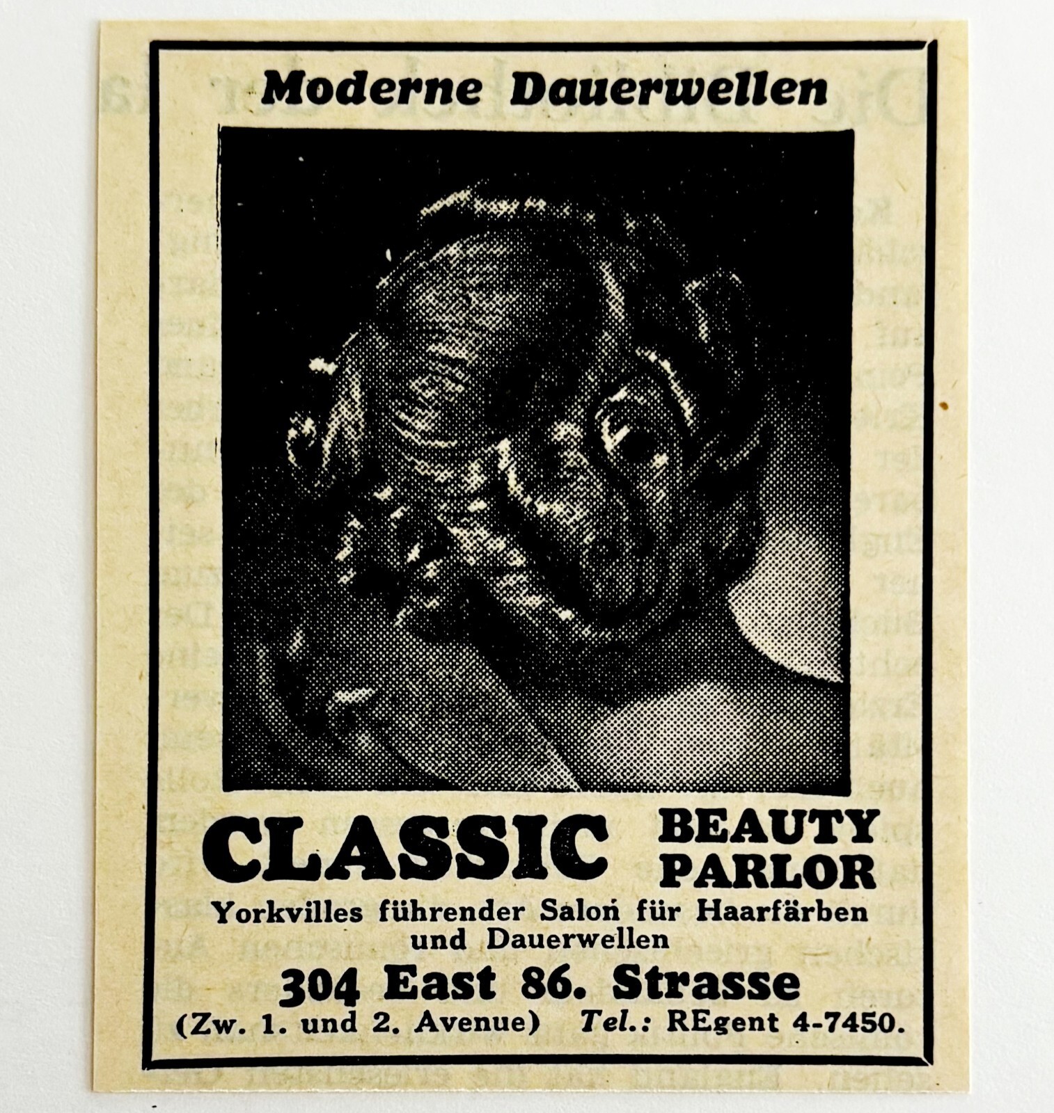 1945 WW2 German-USA Salon Advertisement Classic Beauty Parlor Hair NYC C94B