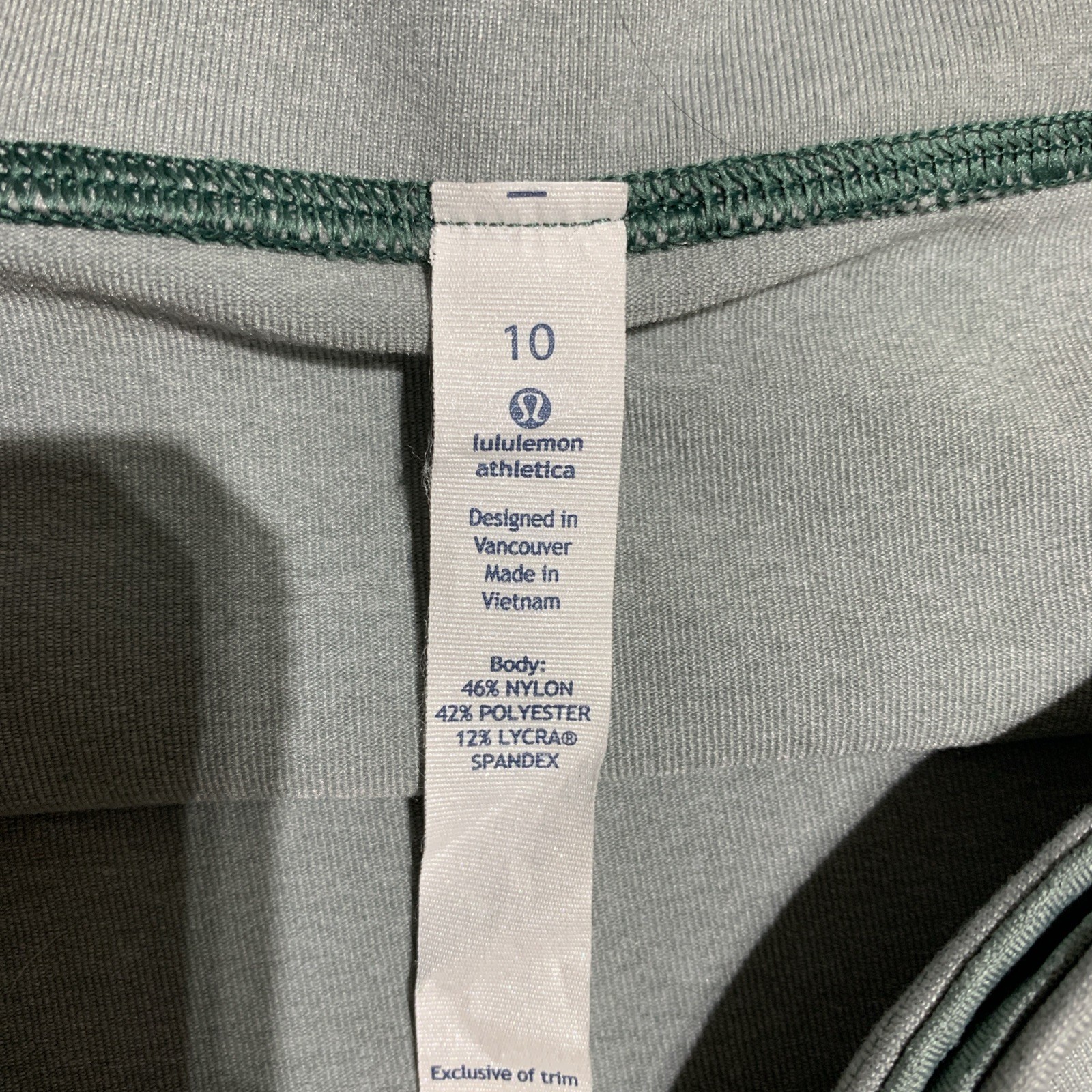 The Lululemon City Skirt in Heathered Earl Grey is a stylish and versatile piece perfect for various occasions including travel, parties, casual outings, and workwear. This solid-colored skirt features a high rise and a pull-on closure with an elastic waist for comfort. Made from a blend of polyester, nylon, and spandex, this knit skirt offers stretch and durability. The green-gray color and logo accents add a touch of sporty urban fashion to the short straight and pencil style, making it a great addition to your summer, fall, or spring wardrobe.