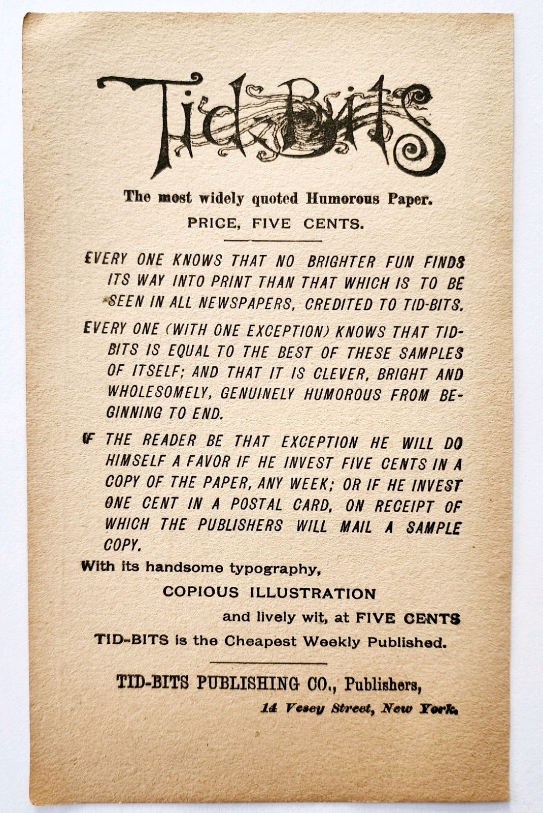 1886 Tid Bits Humor Newspaper Advertisement and 49 similar items