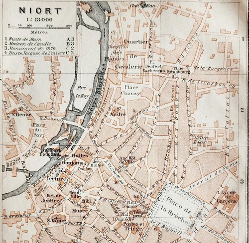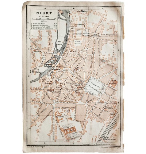 Map Niort Southern France Rare 1914 Lithograph WW1 Street Mini Sheet DWAA20A