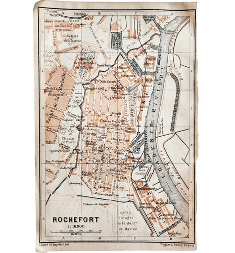 Map Rochefort Southern France Rare 1914 Lithograph WW1 Street Mini Sheet DWAA20A