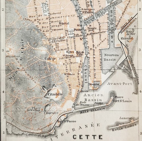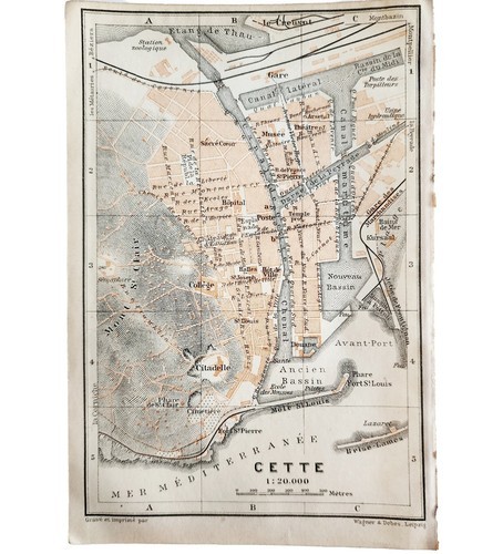 Map Cette Southern France Rare 1914 Lithograph WW1 Street Mini Sheet DWAA20B