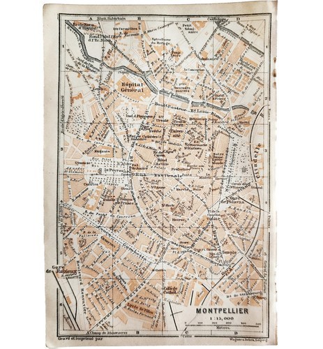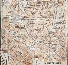 Map Montpellier Southern France Rare 1914 Lithograph WW1 Street Mini DWAA20B