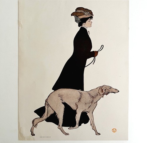 Morning Stroll 1908 Penfield Art Print Borzoi Beautiful Victorian Woman DWBB1
