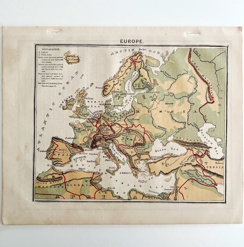 Map Of Europe 1869 Guyot's Geography Victorian Lithograp Antique Art Print DWP3D