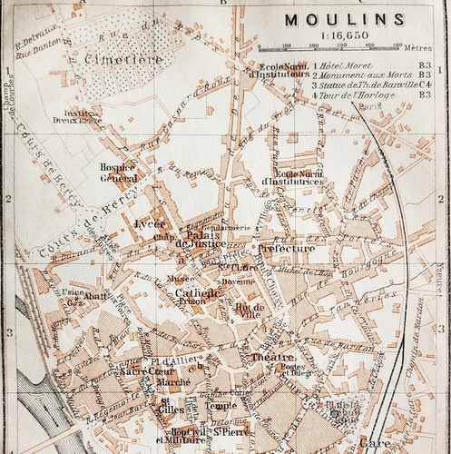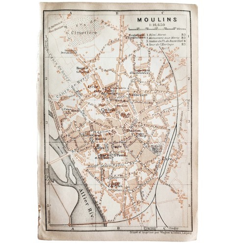 Map Moulins Southern France Rare 1914 Lithograph WW1 Street Mini Sheet DWAA20A