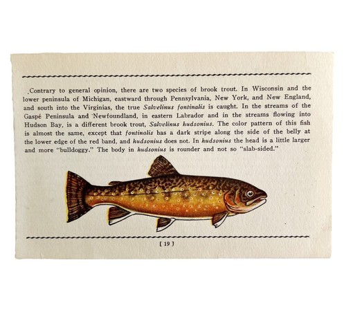 Brook Trout 1939 Fresh Water Fish Art Gordon Ertz Color Plate Print PCBG20