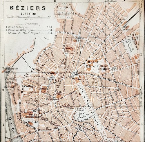 Map Beziers Southern France Rare 1914 and similar items