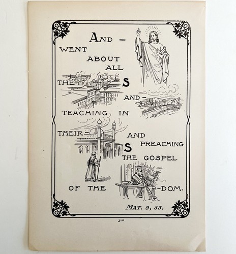 1901 Bible Passage Matthew 9:35 Victorian Word Symbol Puzzle Religious DWDD6