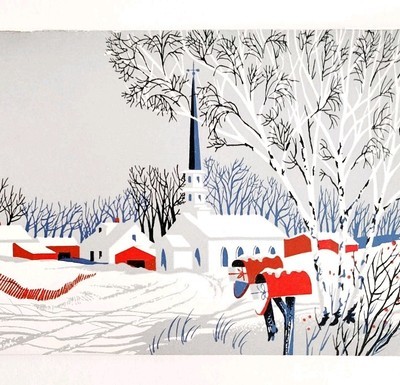 1960s Christmas Card Lithograph Winter New and 37 similar items