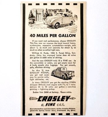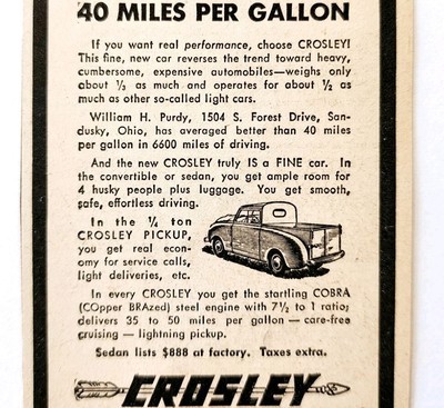 1947 Crosley Pickup COBRA Steel Engine Advertisement Vintage Automobilia E8J
