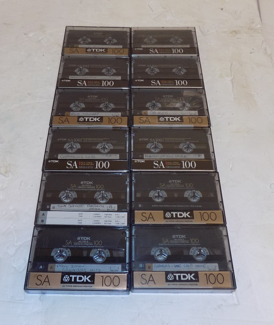 Lot of 12 TDK SA100 Audio Cassette Tapes USED Erased