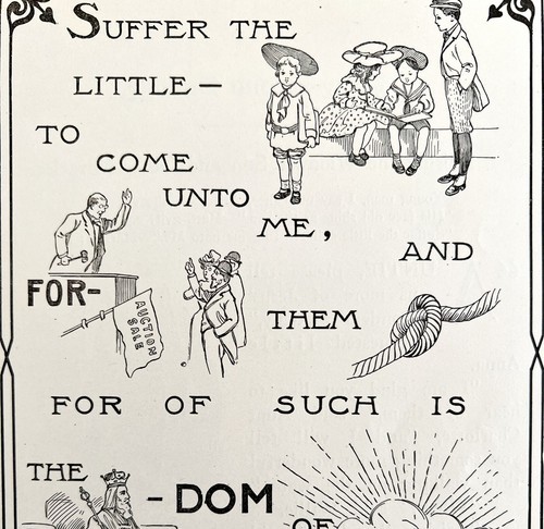 1901 Bible Passage Mark 10:14 Victorian Word Symbol Puzzle Religious DWDD6