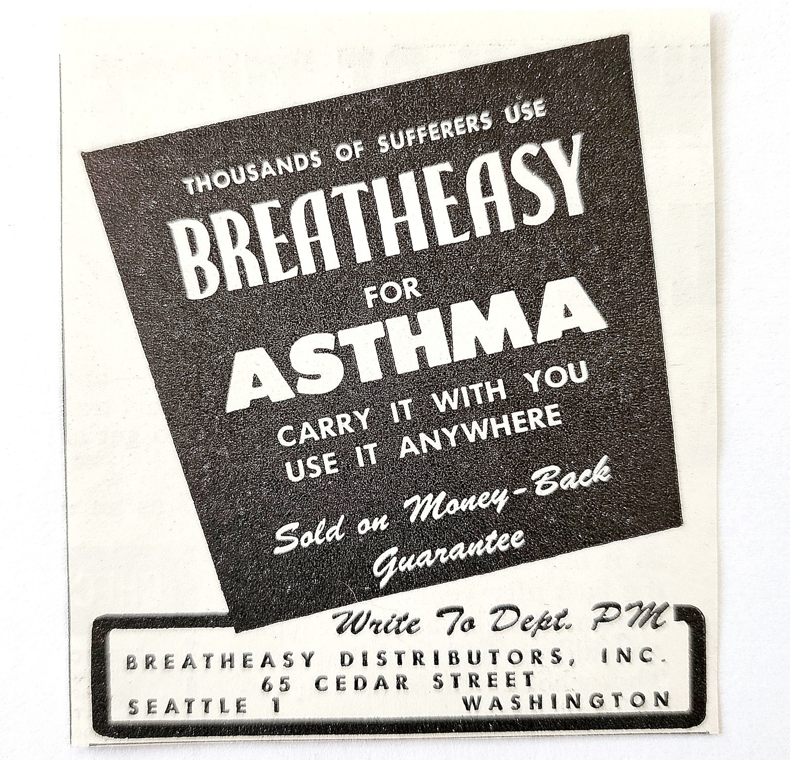 1947 Breatheasy Asthma Inhaler Medicine Advertisement Medical Vintage E8J