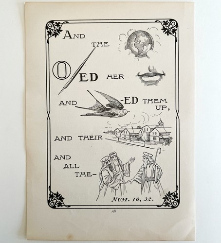 1901 Bible Passage Numbers 16:32 Victorian Word Symbol Puzzle Religious DWDD8