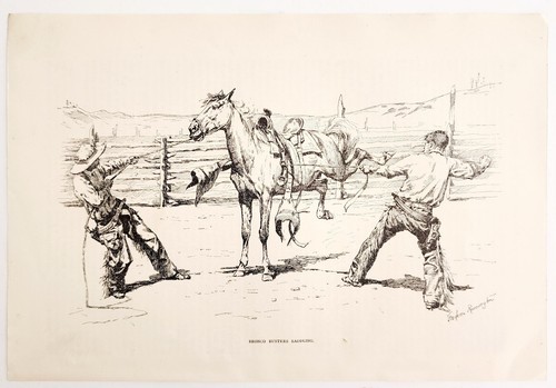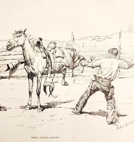 1888 Remington Broco Busters Saddling Book Print Victorian Ephemera DWNN11