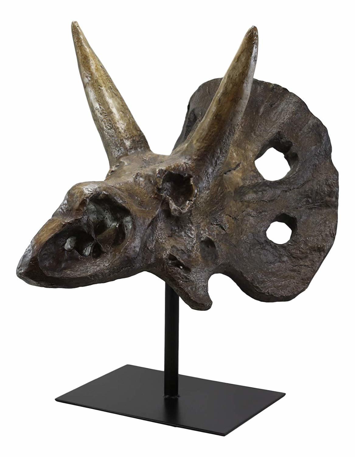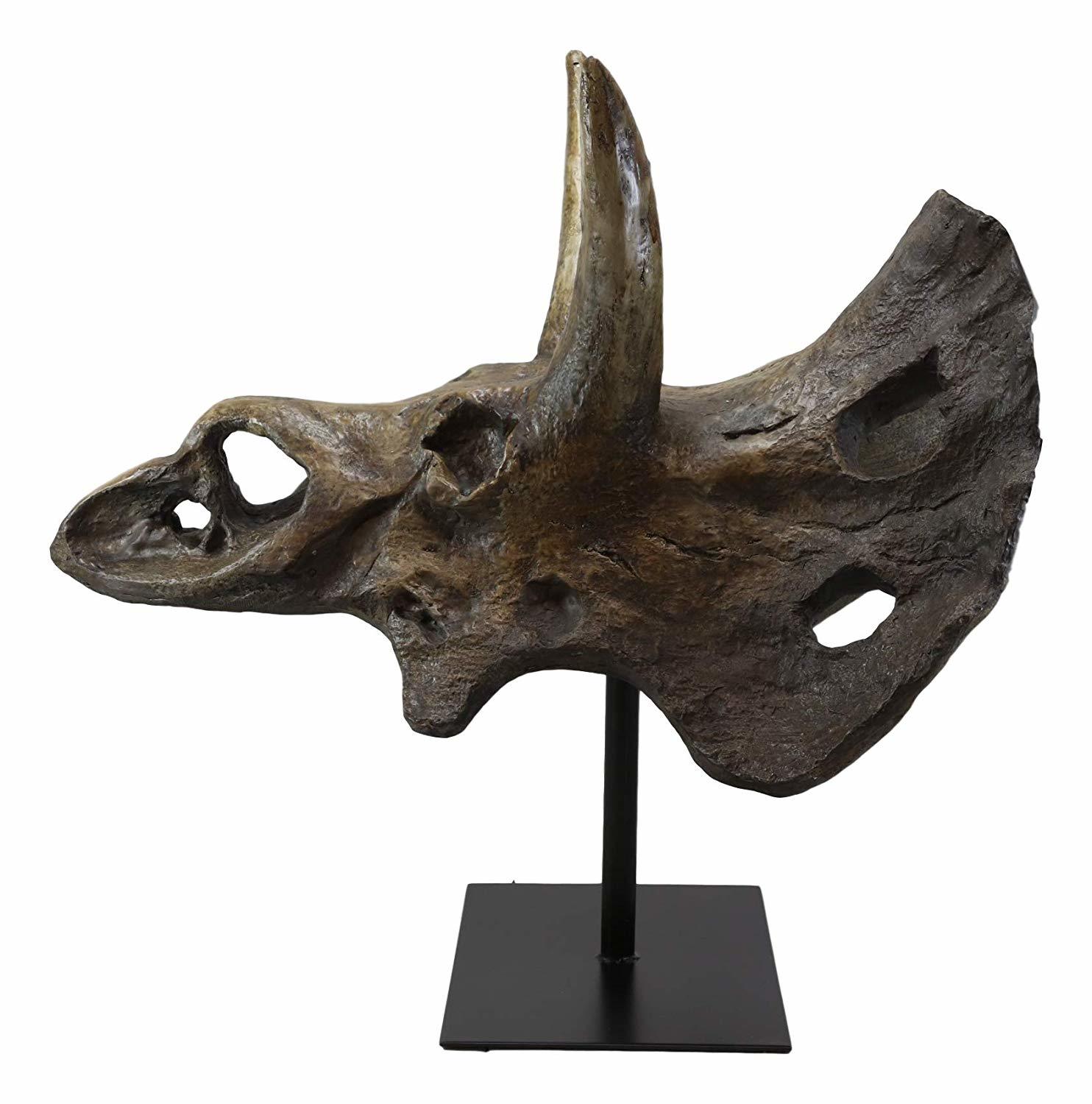 ? This Triceratops Dinosaur Fossil Skeleton Statue is made of high quality polystone, individually handpainted and polished. Because each piece is partially hand crafted, color tone may vary from pictures. The product mount is made of metal and is included with the item.