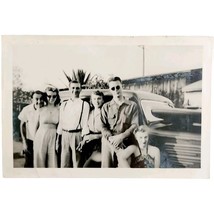 Family Real Photo Antique Fashion Classic Car 1950s Unknown Age Location E83H