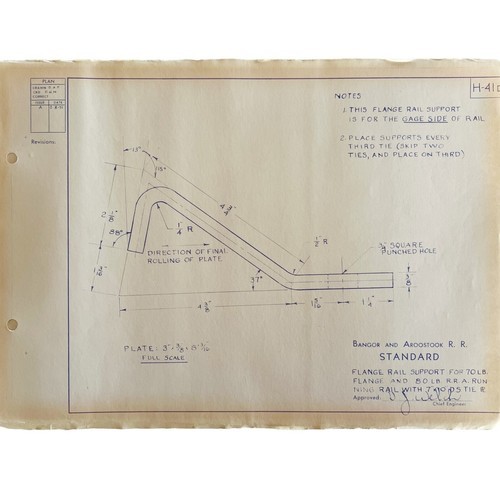 1971 Railroad Bangor Aroostook Flange Rail Support Blueprint H41d DWDD13